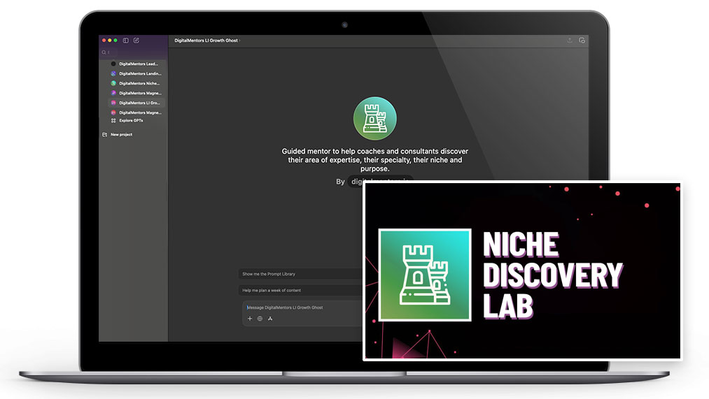 Your private AI assistant trained by DigitalMentors to help you identify your most profitable niche, craft your core message, and validate it in minutes.